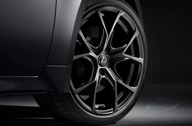 F SPORT Mode Black版本在外观方面,采用磨砂质感车漆,无论是视觉效果还是质感,都有着不错的表现,纺锤形中网依然很有攻击性,机器盖两侧的凸起也是较为锋利,很有力量感,日间行车灯采用箭头形状星速优配,运动版还标配19寸BBS锻造铝合金轮毂,刹车卡钳采用红色涂装。